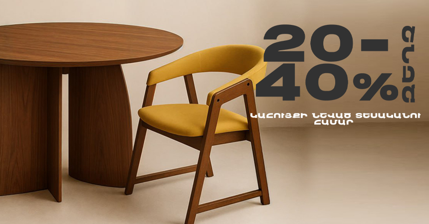 20-40 տոկոս զեղչ կահույքի նշված տեսականու համար