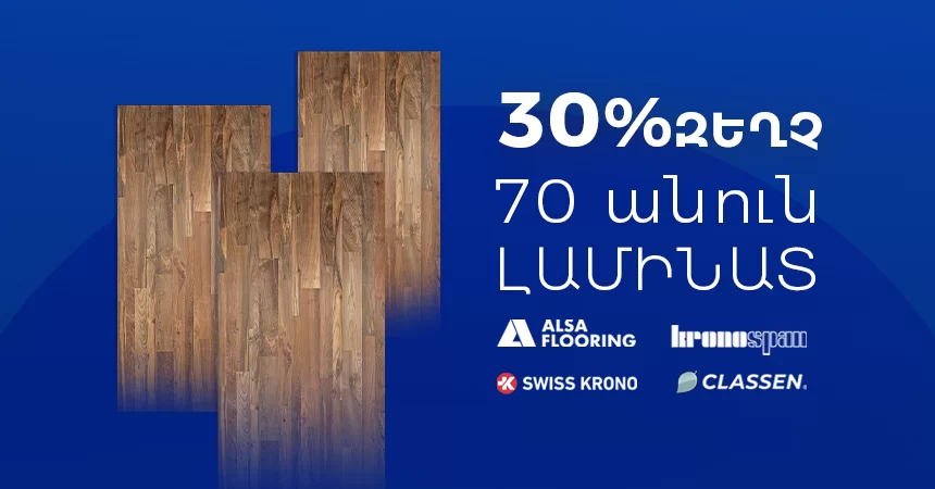 30 տոկոս զեղչ եվրոպական լամինատի նշված տեսականու համար