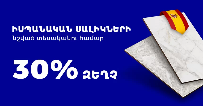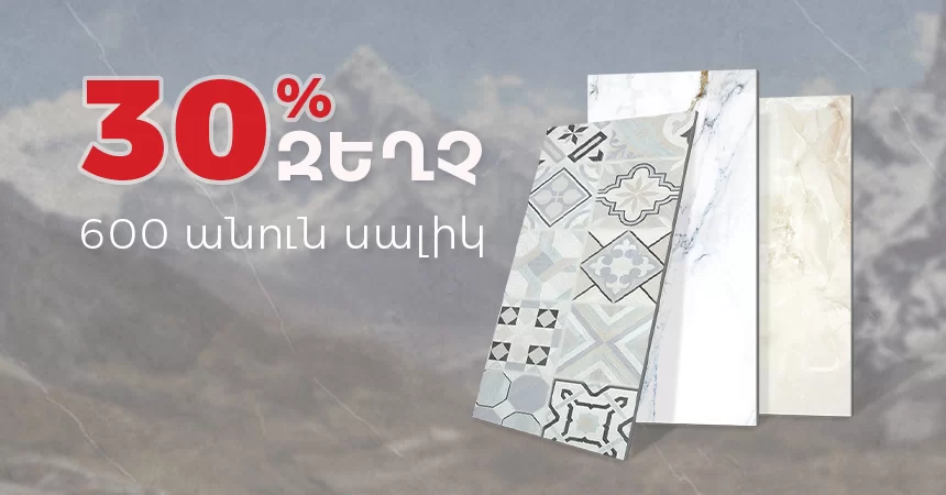 30% ԶԵՂՉ՝ սալիկների նշված տեսականու համար